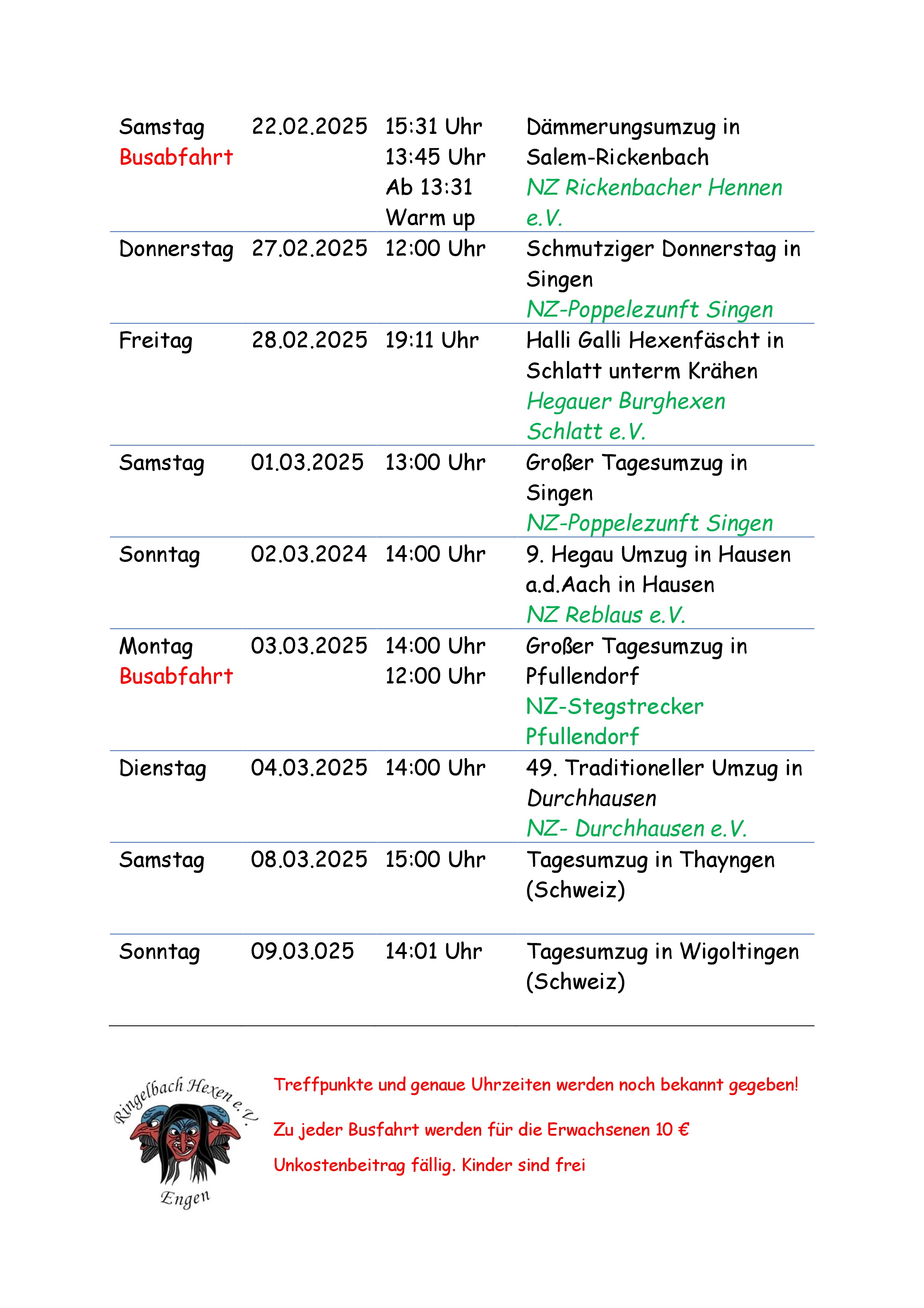 Bis heute sind die Ringelbachhexen aus dem Städtchen Engen verbannt, aber einmal im Jahr kommen sie in den Hegau, um ihr Unwesen zu treiben.